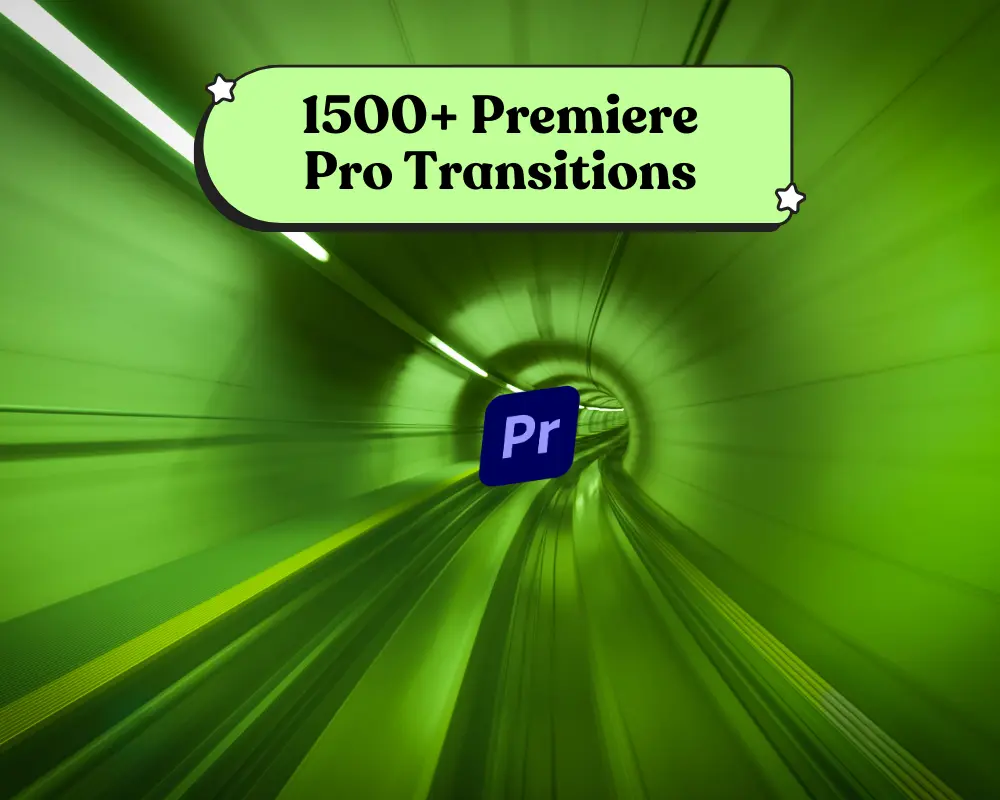 The bundle includes over 2000 Lightroom presets and 1500 Premiere Pro transitions.